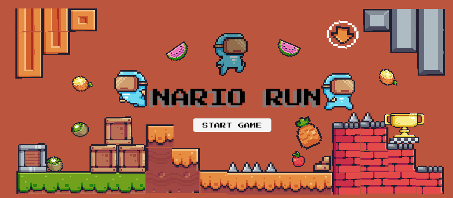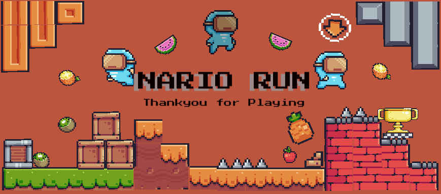 Nario Run is an Adventure game where the 'Hero' ( player) has to avoid the traps, collect cherries and reach the Endpoint.